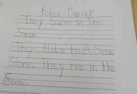 We've done syllables since the beginning of the year, so that wasn't my worry in giving them this task. It was the adjustment from writing in sentences to creating kind of limited phrases. Here's what they came up with :