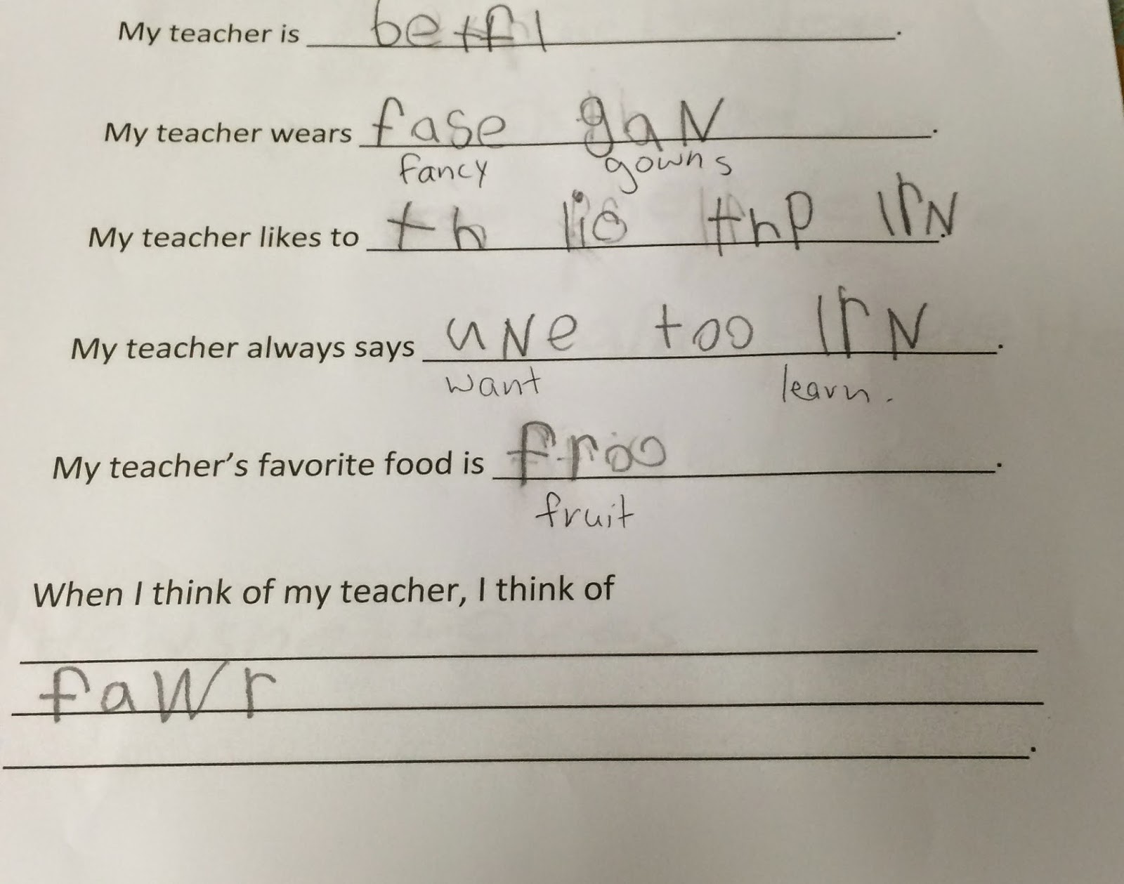 Before you read these, let me preface this by saying I firmly believe all young children (and dogs) see your spirit when they look at you. If you care about them and they know that-then in their eyes you are beautiful, so that's why you see that in so many responses. I didn't bribe them or anything! :) Some of the upper grade teachers don't realize that. My students will go down the hall saying "that's a pretty dress", "those are beautiful shoes" to stranger teachers and the teachers will blush and say "thank you". I don't tell them they say that to everyone! :)