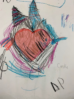 I am a big believer in encouraging students to be creative. We say "be creative" especially when they write but when do they practice those skills. One thing I do periodically in our class is Divergent Art. The students are asked to turn a shape or line into something. Because Valentine's Day is coming up, we used hearts.